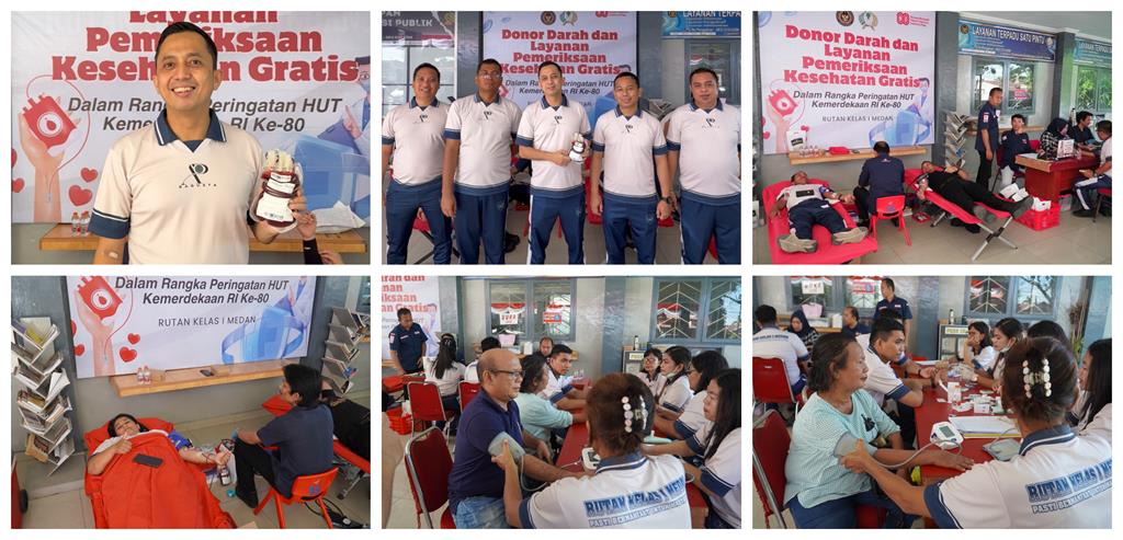 Medan – Dalam rangka memeriahkan HUT ke-80 Kemerdekaan RI, Rumah Tahanan Negara (Rutan) Kelas I Medan Kanwil Ditjenpas Sumut menggelar kegiatan senam sehat, donor darah, hingga pemeriksaan kesehatan gratis bagi pegawai dan masyarakat, Sabtu (23/8/2025).